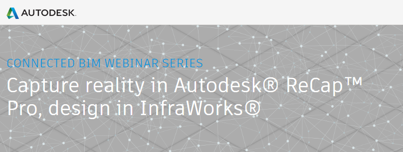 Additionally: «In this webinar, you’ll learn how to get started with ReCap Pro to scan and capture as-built site data accurately. We’ll walk you through the process of scan registration and 3D point cloud creation, demonstrate key features of ReCap Pro, then import the reality data to InfraWorks® for further design. InfraWorks® software supports connected BIM (Building Information Modeling) processes, letting designers and civil engineers plan and design infrastructure projects in the context of the real world»