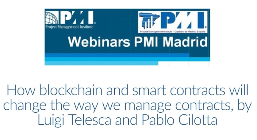 PMI Capitulo Madrid nos dice: «Smart contracts and blockchain technologies are changing the way we will do business, the way we will manage our companies and business relations, the way we will negotiate our assets and, finally, how we will monitor all contract obligations. In this webinar, Luigi will explain in detail how blockchain and smart contracts can innovate the project management and the way we keep track of all contractual obligations facilitating interactions among the digital and the physical work. He will also present the Trakti framework for contract management and how smart contracts can monitor and automate the payments of a conditional based contract based on SLA performance of a third party service»