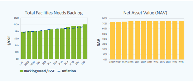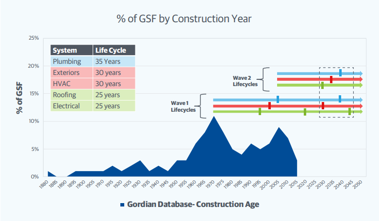 «2. Compounding Waves of Lifecycle Needs – The timing of these waves will bring new and expanding facilities demands from relatively recent construction surges. These will compound with existing challenges in operational demand and facilities needs backlogs»