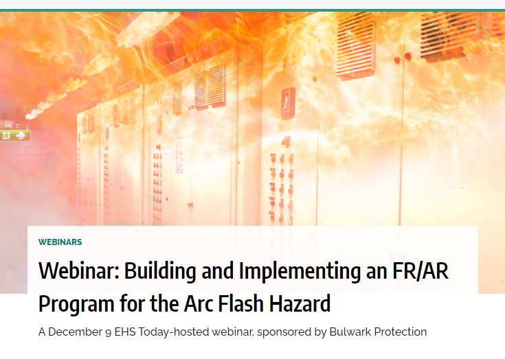 Este 9 de Diciembre, 2020 desde las 2:00 PM (EST) se viene programando el webinar: «Building and Implementing an FR/AR Program for the Arc Flash Hazard» presentado por EHS Today