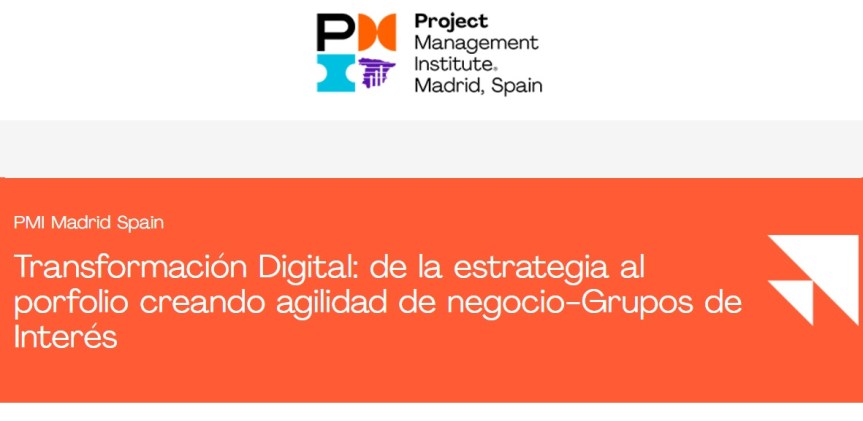 Este Martes 19 de Enero, 2021 desde las 14:00 HRS (COT) se desarrollará el webinar: «Transformación Digital – de la estrategia al portafolio creando agilidad de negocio – Grupos de Interés» presentado por el PMI Capítulo Madrid