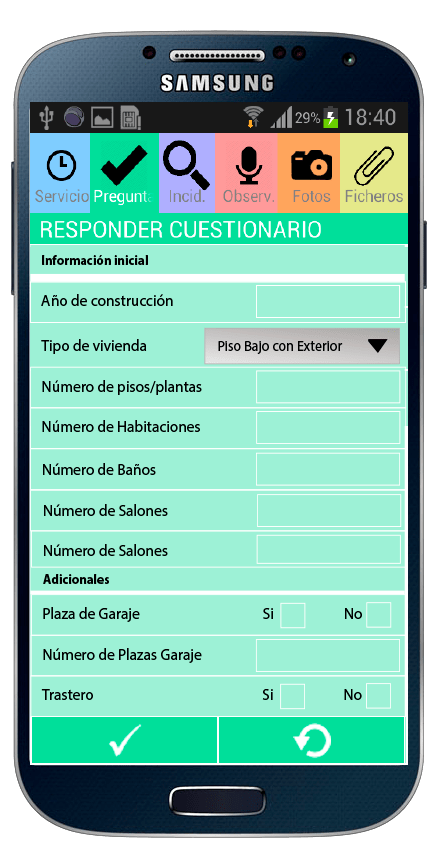Otro ejemplo lo tenemos en que nos dimos cuenta de que cuando un operario va a un determinado edificio, no siempre tiene a mano el teléfono, o no tiene la voluntad de ser riguroso y registrar su presencia y el servicio que va a ejecutar. Por ello, se identifica cada estancia con un TAG NFC de tal manera que cada vez que un operario llega a dicha estancia, no tiene que agarrar el teléfono y buscarla; simplemente toma el teléfono, lo pasa por delante del TAG y automáticamente se visualiza el checklist que tiene que rellenar.