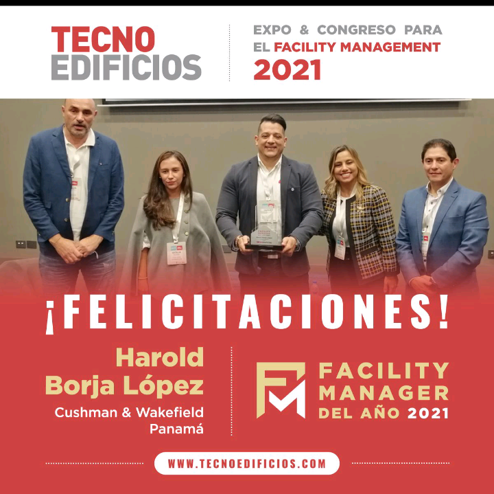Culminó con éxito una versión más del Congreso y Feria para el Facility Management 2021, evento organizado por Latin Press Inc., durante el cual se efectuó la premiación del Facility Manager del Año, habiéndose seleccionado cinco finalistas, resultó ganador: Harold Borja, Cushman & Wakefield – Panamá.