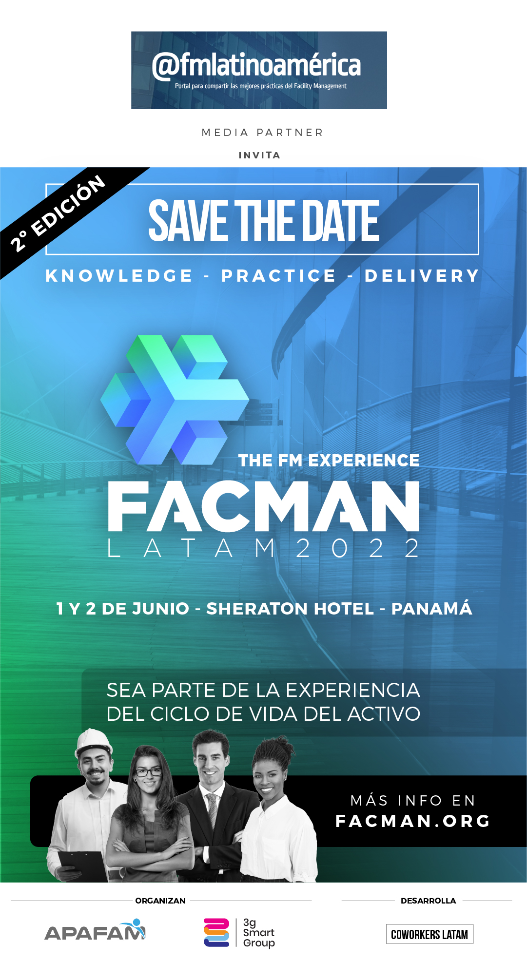 Ya empezaron las inscripciones para unos de los eventos más importantes en relación al Facility Management en la región, donde tendremos la oportunidad de participar de talleres, exposiciones y workshops acerca de esta apasionante profesión, con las principales empresas y expertos líderes en esta disciplina en latinoamérica y a nivel global.