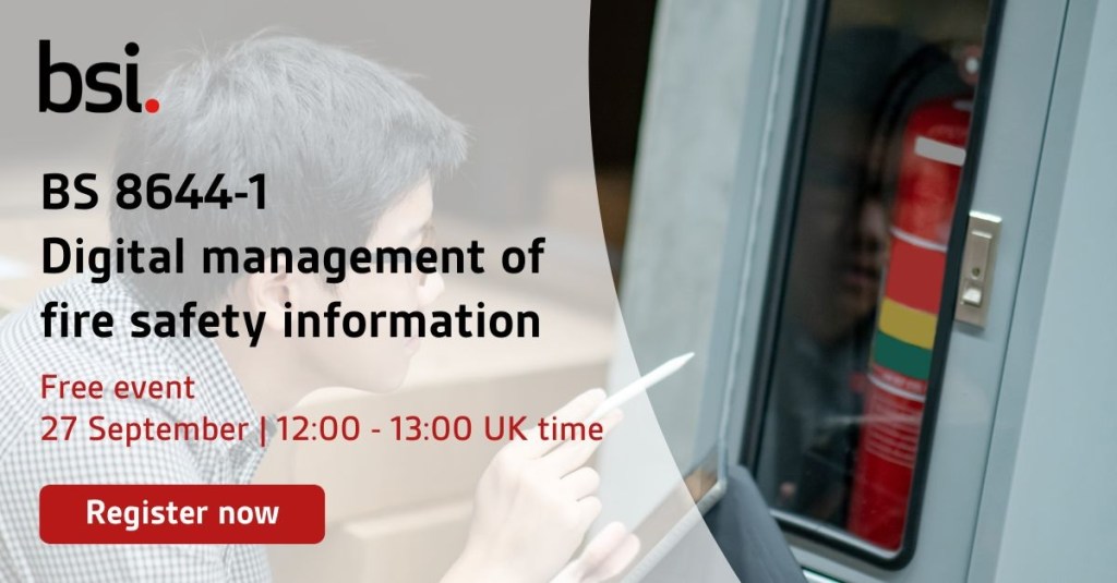 Este 27 de Septiembre, 2022 desde las 06.00 hrs (GMT-5) se estará desarrollando el webinar: «Digital Management of Fire Safety Information» organizado por BSI (British Standard Institute)