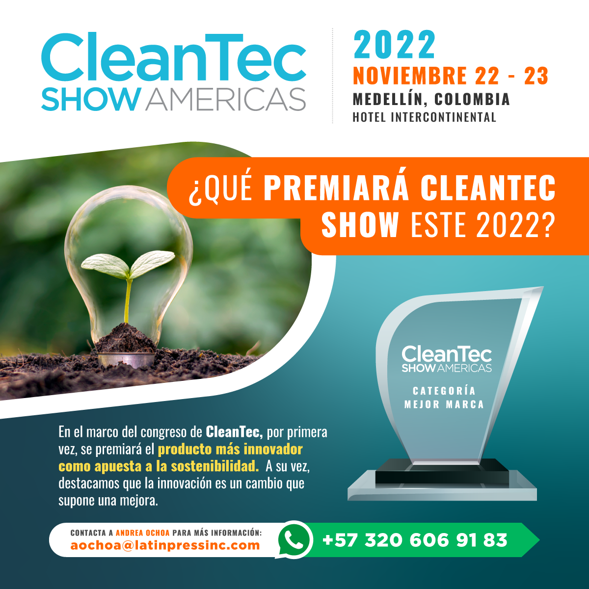 El congreso referente en la región para los profesionales en las áreas de Aseo, Limpieza, Higiene y Mantenimiento en América Latina, CleanTec buscará responder la interrogante «¿Cómo están liderando productos sostenibles e innovadores en medio ambiente y cuál es la responsabilidad social de dichos productos?» Por primera vez, se premiará el producto más innovador como apuesta a la sostenibilidad.