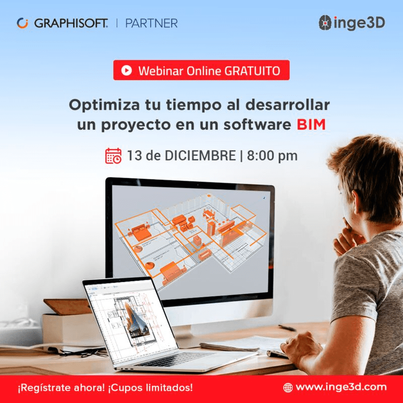 Este 13 de diciembre, 2022 desde las 20.00 hrs. (GMT -5) se estará desarrollando el seminario web: «Optimiza tu tiempo al desarrollar un proyecto en software BIM» presentado por Ingeniería Digital 3D