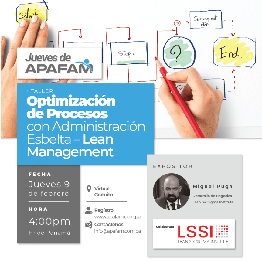 «La Asociación Panameña de Facility Management, APAFAM y Lean Six Sigma Institute les invitan al #JuevesdeAPAFAM sobre Optimización de Procesos con Administración Esbelta – Lean Management»