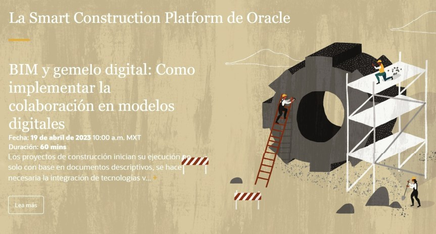 Este 19 de Abril, 2023 desde las 11.00 hrs. (GMT -5) se estará desarrollando el seminario web: «BIM y gemelo digital – Como implementar la colaboración en modelos digitales» presentado por ORACLE Construction and Engineering.