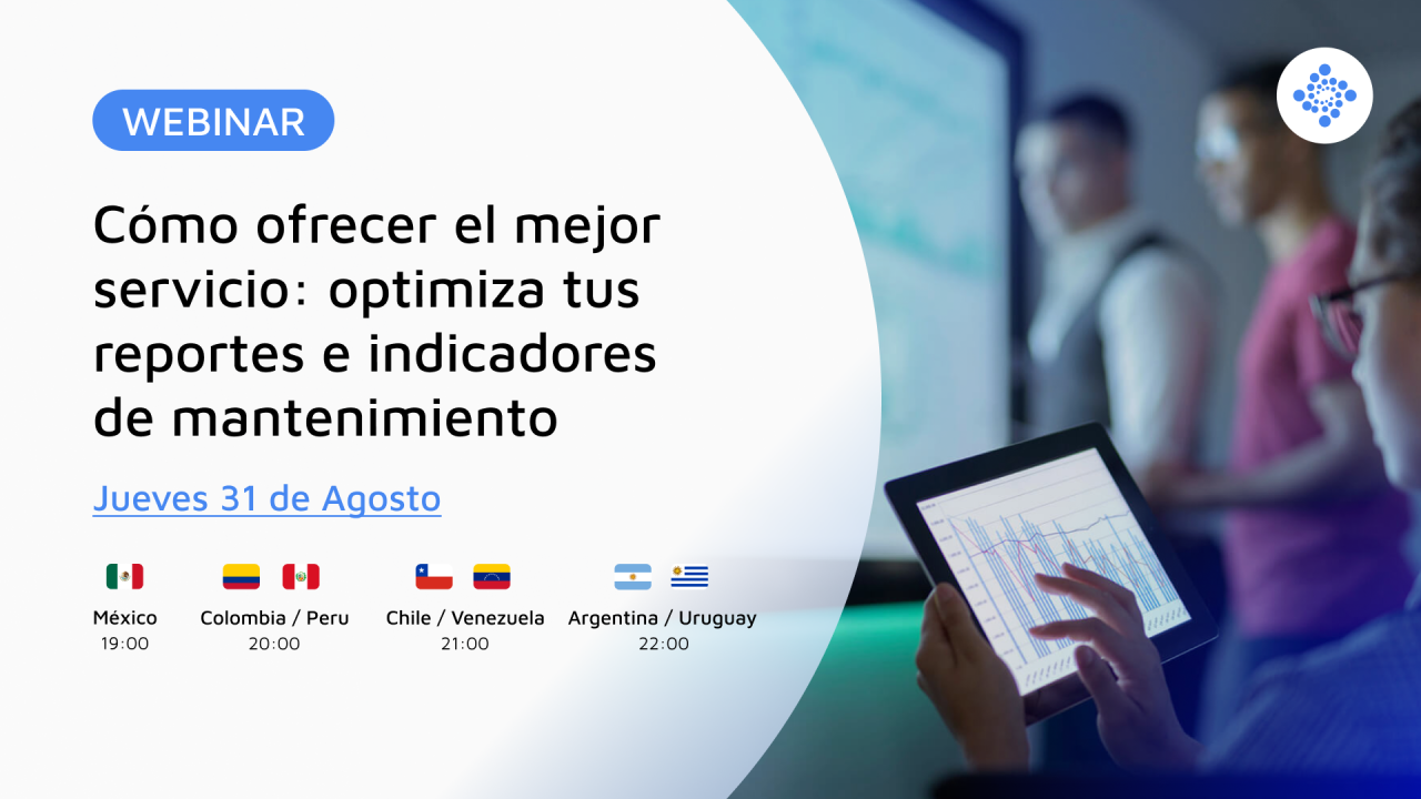 La data cobra un verdadero valor cuando es convertida en información, a través de reportes e indicadores de mantenimiento. Este jueves 31 de agosto, 2023 desde las 20.00 hrs. (GMT -5) se estará desarrollando el webinar: «Cómo ofrecer el mejor servicio – optimiza tus reportes e indicadores de mantenimiento» presentado por Fracttal
