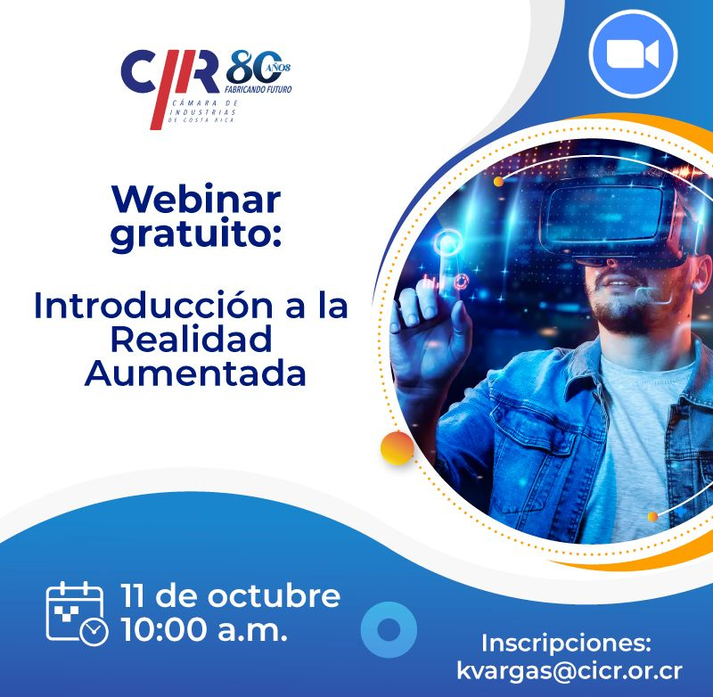 Este 11 de octubre, 2023 desde las 10:00 hrs. (GMT -5) se desarrollará el seminario web: «Introducción a la Realidad Aumentada» presentado por la Cámara de Industrias de Costa Rica (CICR)