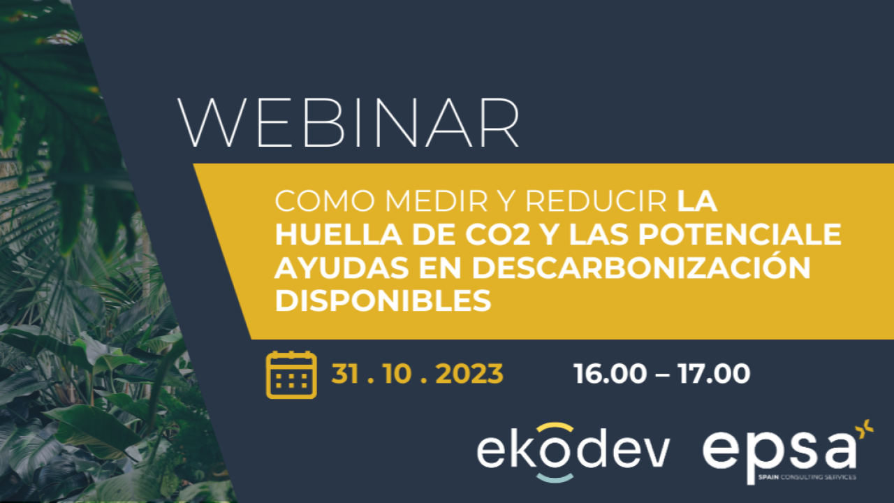 Este 31 de octubre, 2023 desde las 10.00 hrs (GMT-5) se estará desarrollando el seminario web: «Como medir y reducir la Huella de CO2 y las potenciales ayudas de descarbonización disponibles» presentado por EPSA Spain Consulting Services