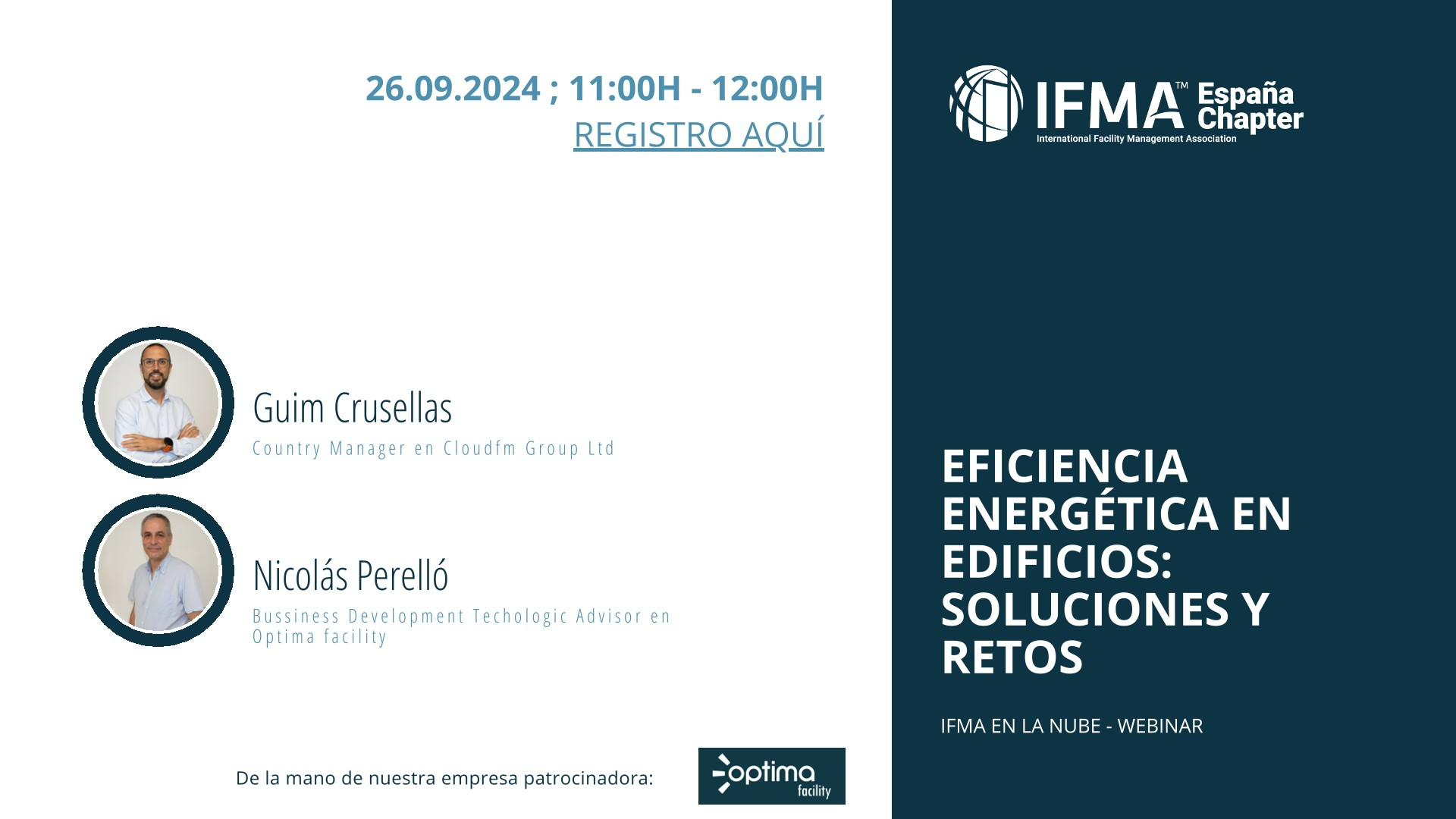 Este 26 de septiembre de 2024, desde las 11:00 hasta las 12:00 hrs (GMT-5), se estará desarrollando el seminario web: «Eficiencia Energética en Edificios: Soluciones y Retos», organizado por IFMA España.