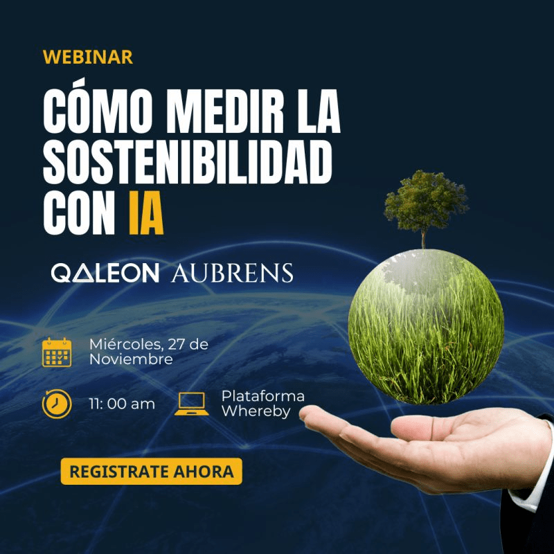 Este 27 de noviembre de 2024 desde las 05:00 hrs (GMT-5) se estará desarrollando el seminario web: «Cómo medir la sostenibilidad con IA», presentado por Qaleon y Aubrens.