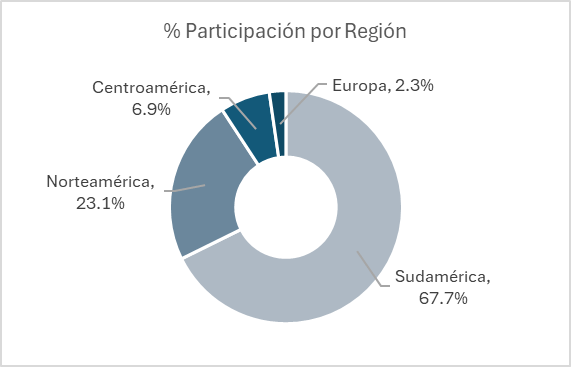 El 29.5% de los encuestados de Sudamérica, corresponde a Colombia, seguido de un 23.9% de Perú, de un 14.8% de Argentina, y un 12.5% de Chile. El 90% de los encuestados en Norteamérica corresponden a México, mientras que el 66.7% de los encuestados en Centroamérica corresponden a Panamá, seguido de un 22.2% de El Salvador.