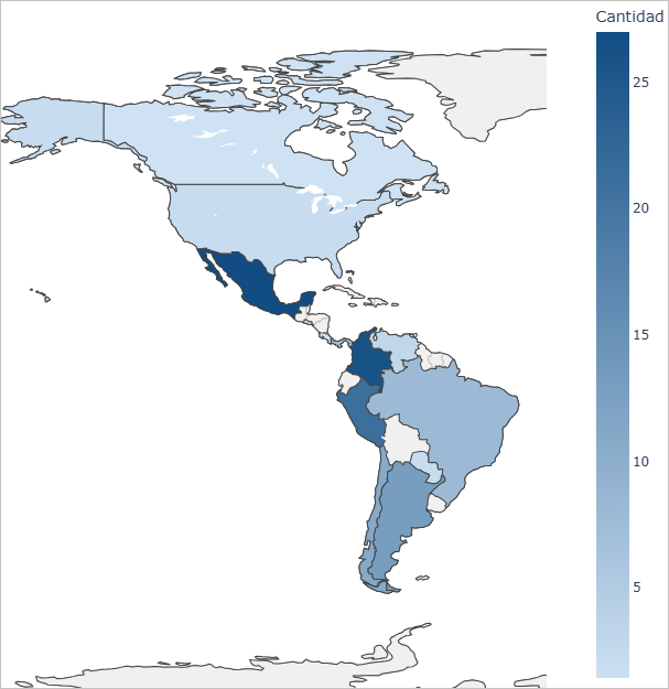 El 29.5% de los encuestados de Sudamérica, corresponde a Colombia, seguido de un 23.9% de Perú, de un 14.8% de Argentina, y un 12.5% de Chile. El 90% de los encuestados en Norteamérica corresponden a México, mientras que el 66.7% de los encuestados en Centroamérica corresponden a Panamá, seguido de un 22.2% de El Salvador.