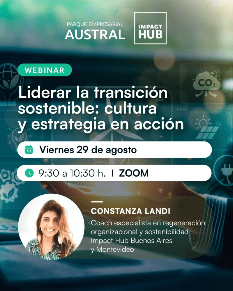 Este 29 de agosto, 2025 desde las 09.00 hrs (GMT-5) se realizará el seminario web: «Liderar la transición sostenible: cultura y estrategia en acción» organizado por Parque Empresarial Austral.